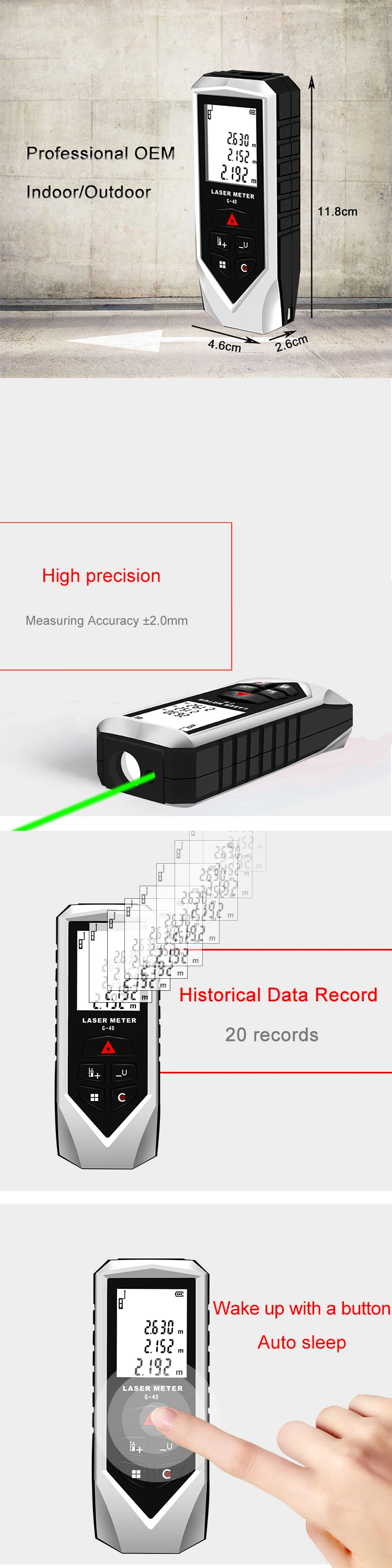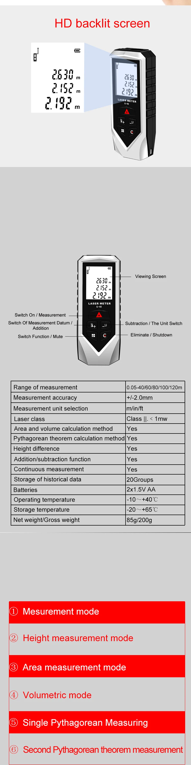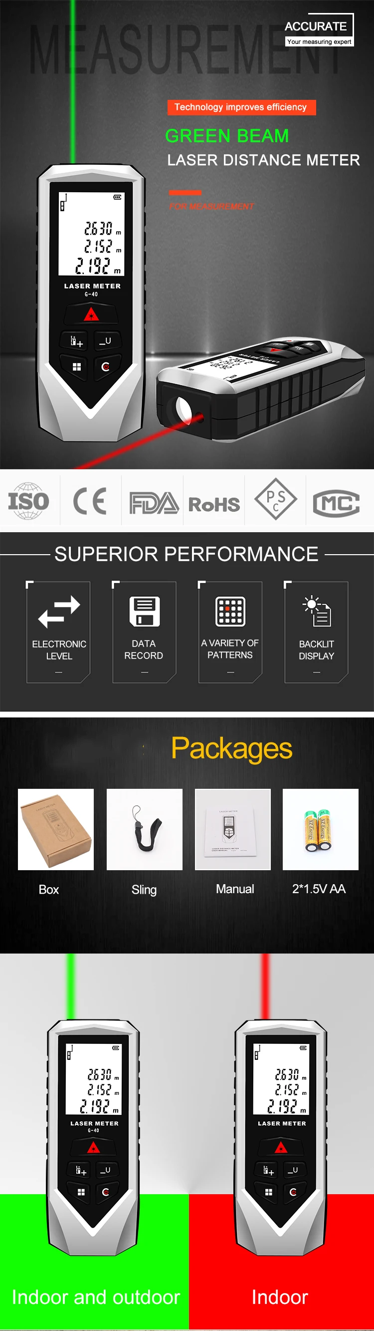 Measuring Range | Red 40-120m/Green 60-100m |