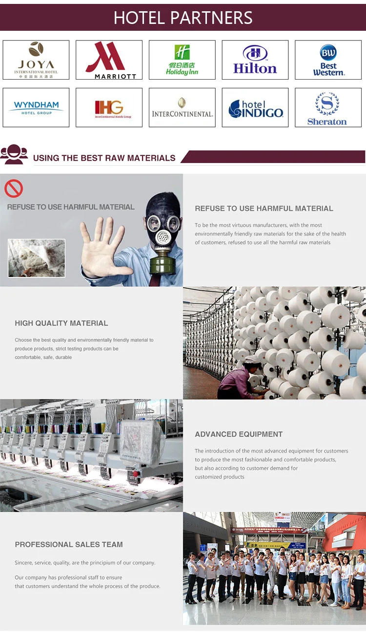 Guangzhou Weisi Textile Co., Ltd. is a modern enterprise integrating R&D, design, production, and marketing service. We are known as the business model family of military base in Guangzhou and the key enterprise with the support of Labor Bureau.Our company is located in No. 383 , Fushi Road, Dashi Section, Panyu District, Guangzhou, China, with a 3,000 square meter modern standard plant and a large number of high-quality personnel. We adopt the most advanced production equipment and technology, and strict implementing ISO9001 international quality system standards according to the scientific mode of production and operation management. Our company can create all kinds of high-grade beddings, curtains, robes, towels, linen and other coverings for hotels, guesthouses, schools, and families. Our new product models, with a great variety, full specifications, and superior quality can meet the needs of customers. Our products are well sold not only in many starred hotels at home but also in many other markets in Europe, America and Southeast Asia. We have established long-term cooperation relationship with domestically and internationally famous chain hotels and guesthouses. Our company has established a marketing network and direct sales points all over the country, with "Kardy" well-known brand, and healthy, comfortable, simple and elegant products. We try to build and enhance our brand image. Our company adheres to "quality first, credit-oriented, and win-win cooperation" business philosophy. We welcome you to inquire us by phones or mails and hope to build successful and cooperative relationships with you.