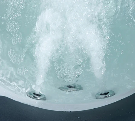 Air baths create a champagne effect as heated air bubbles are forced from the bottom of the tub. Air baths are usually quieter,