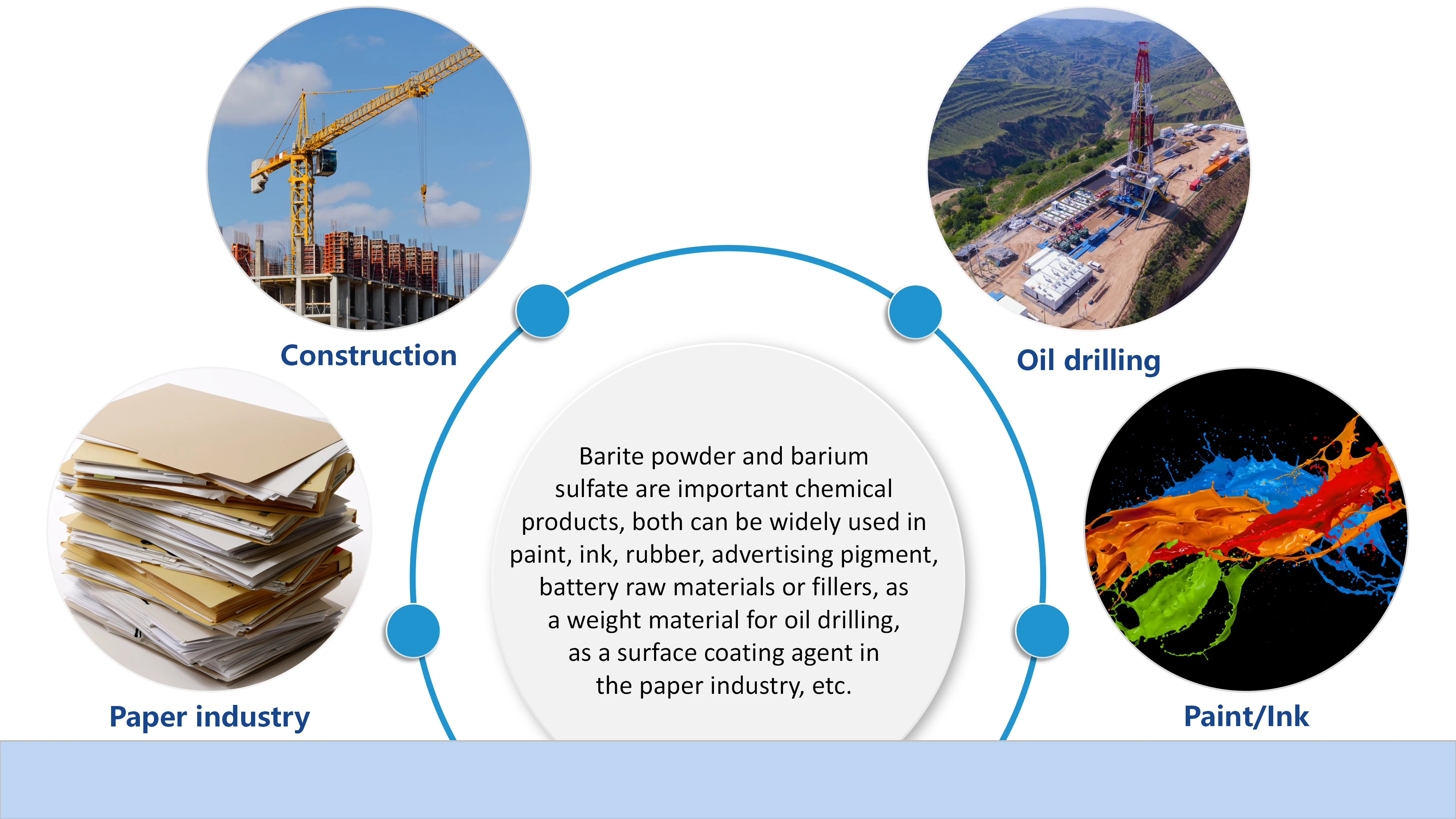 paint, ink, rubber, advertising pigment, fillers, oil drilling, paper industry, etc.
