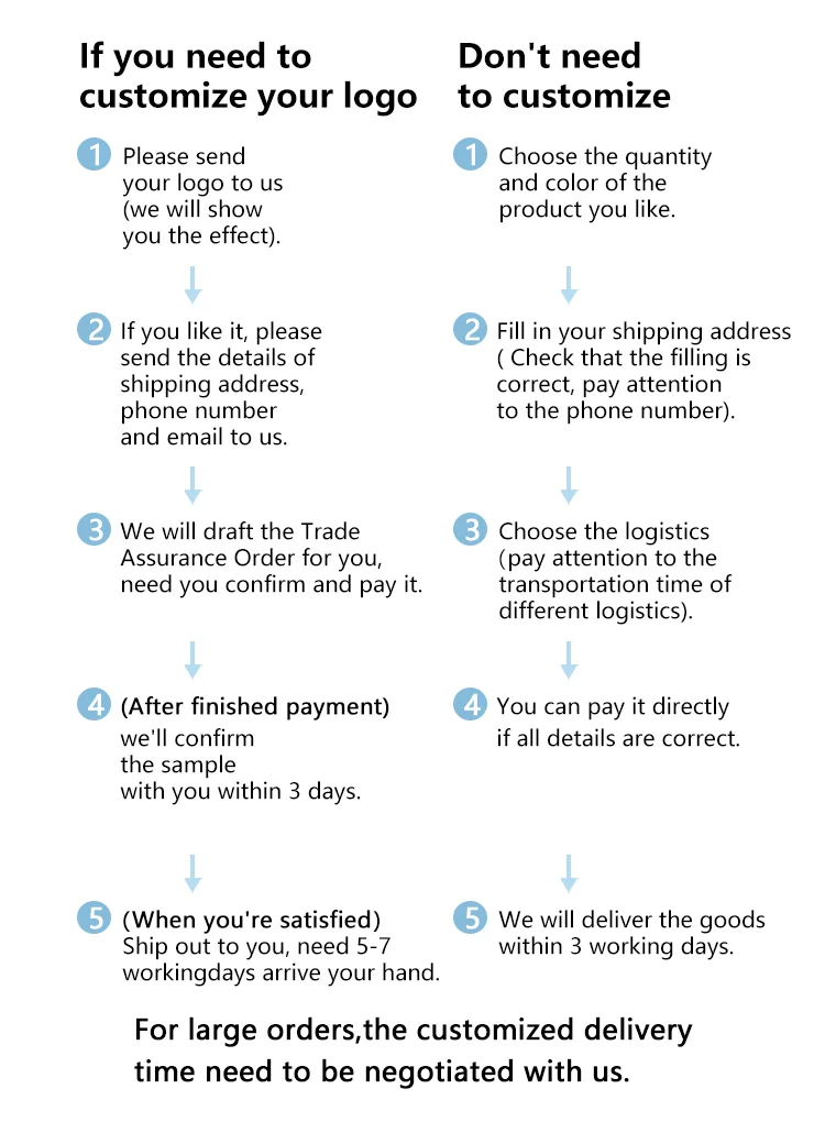 1. Stock products can ship out within 3days, if need logo printing it will take about 5days.