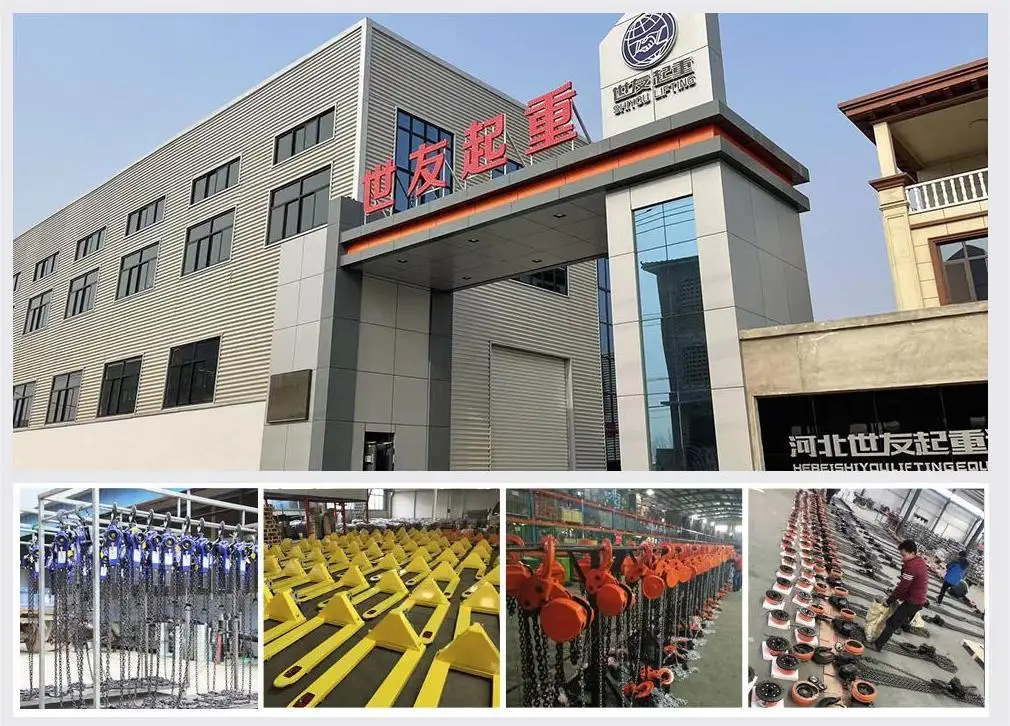 Hebei Shiyou Hoisting Machinery Manufacturing CO.,Ltd has over 30 years experience in hoisting machinery industry. Our company specializes in manufacturing various types of lifting tools, chain block, Little King Kong Electric Hoist,lever block, spring balancer,fall arrester, hand pallet truck, electric hoist, and so on. Our products has been export to many countries and regions,including EuropeSouth America Southeast Asiaetc. In order to ensure product quality each product undergoes rigorous experimental testing before leaving the factory.And our group has completely achieved quality system approvals such as CE certificate. |