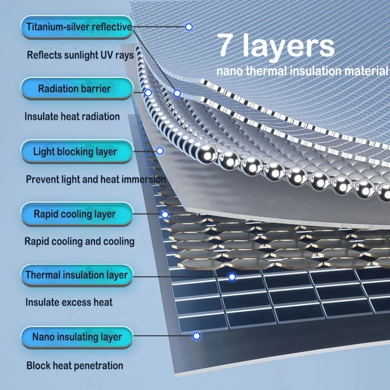 3. Heat and sun protection: block ultraviolet rays, effectively maintain the temperature inside the car, and keep the car cool. At the same time, it can effectively protect the instrument panel and seat cushion of your car from fading and cracking.