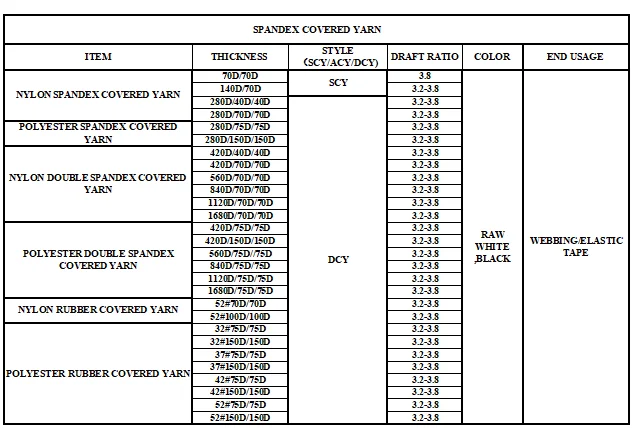 * We can supply a series yarn for sock,tape,seamless,underwear,elastic,jacquard,etc