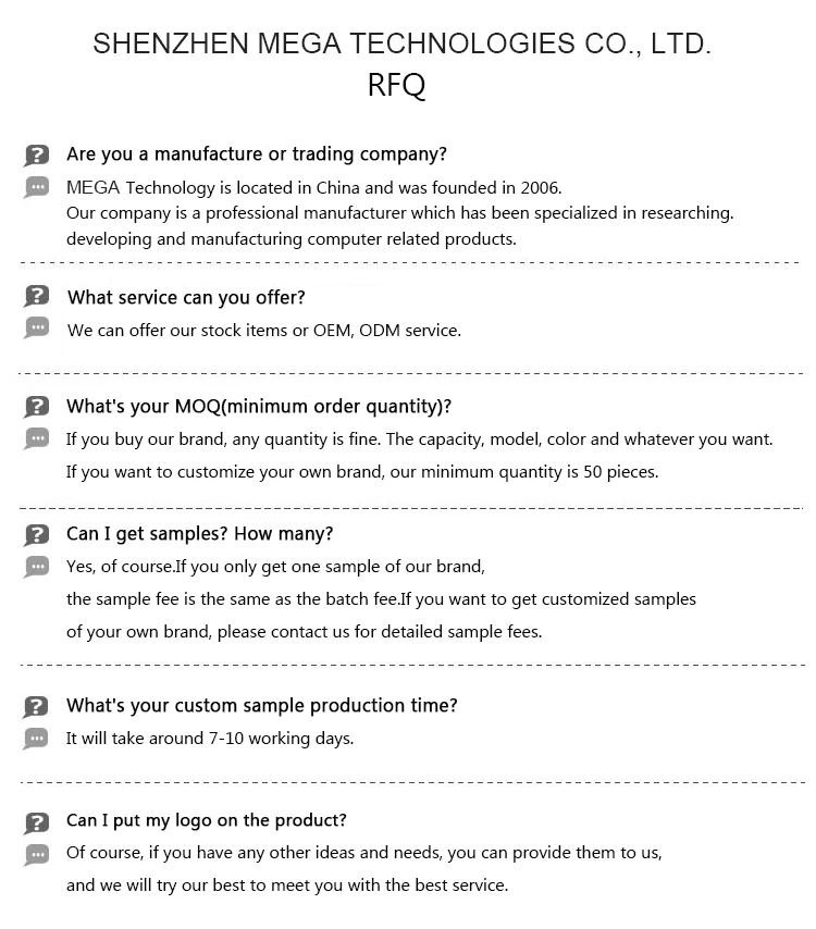 MEGA is a supplier dedicated to R&D, production, sales, RAM memory, SSD hard drives, motherboards, cpu processors, and graphics cards. For 12 years, it has been providing professional OEM and ODM services to customers from North America, the European Union and South America. We have dozens of workers. Our monthly production capacity is 100,000 pieces. We are confident to become a suitable supplier for you.