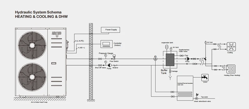 Temperature range of DHW | 40~55C | Hot water: 55~60C / heating:40~45C / cooling:10~12C | |||||
