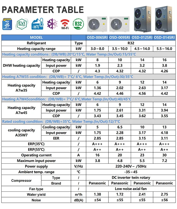 Heating capacity range | 8kw | 10kw | 14kw | 16kw | |||