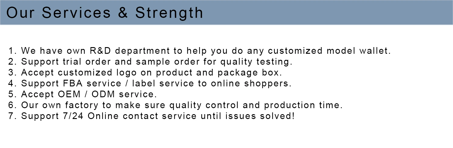 A: We have our own factory, which can design, manufacture and export wallets according to your requirement.