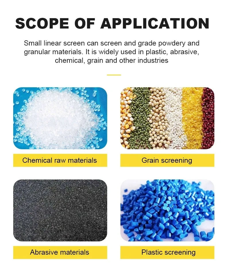 6: Wide range of applications, thermosetting powder coating, plastic powder, epoxy powder, food, beverage, pharmaceutical,chemical, plastics, abrasive, ceramic, paper, nanomaterials and other industries for grading, screening, mixing, mixing, Solid-liquid separation of the ideal equipment.