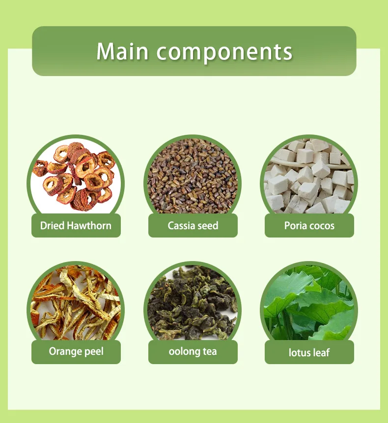 Moringa,lotus leaf,Orange peel,lcassia seed ,oolong tea,Dried hawthorn |