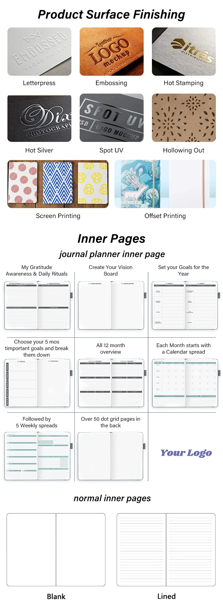 LOGO Finish | Embossed/Debossed/Hot Stamping/Metal Engraved/Silkscreen Printing/Other craft | ||||||