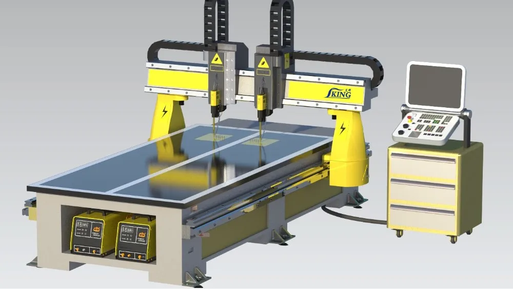 complete CNC system with 300mm 500 mm table, includes controller, pneumatic grounds and enclosure