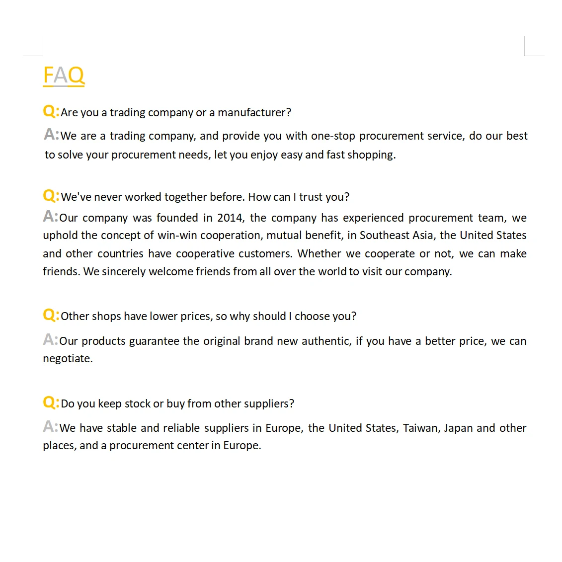 We maintain a pleasant and close cooperation with our customers and have gained a good reputation in the industry.