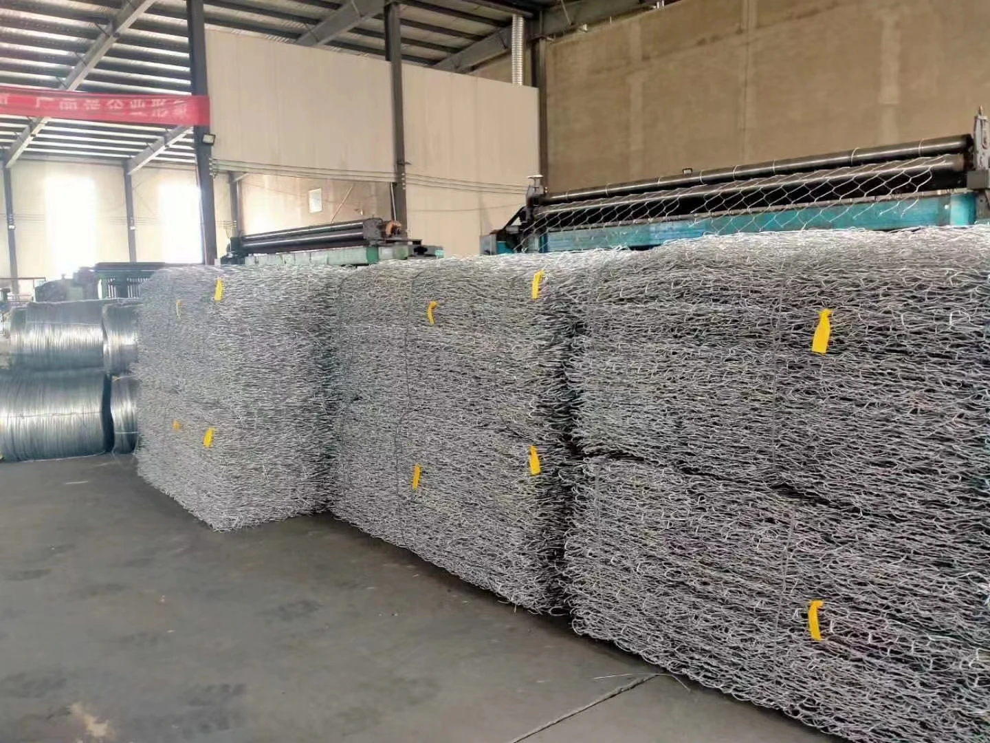Compressed membrane then bundle and wooden pallet of Hexagonal Wire Mesh Gabion Box gabion cage In The United States