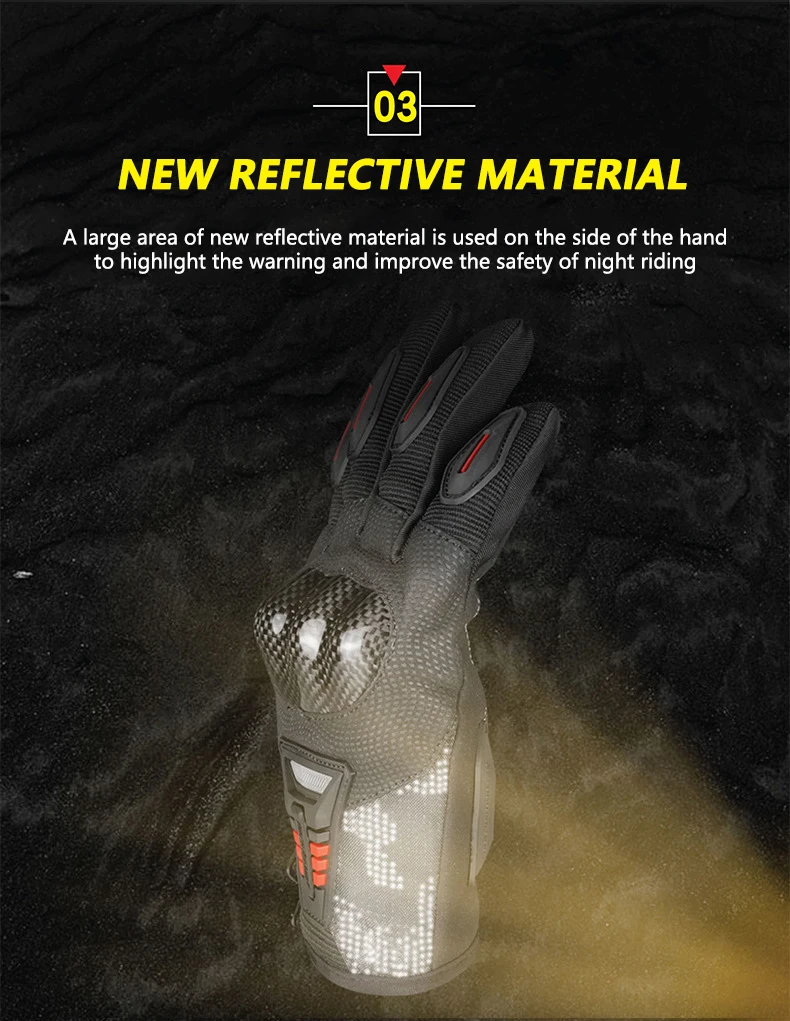 A large area of new reflective material is used on the side of the handto highlight the warning and improve the safety of night riding