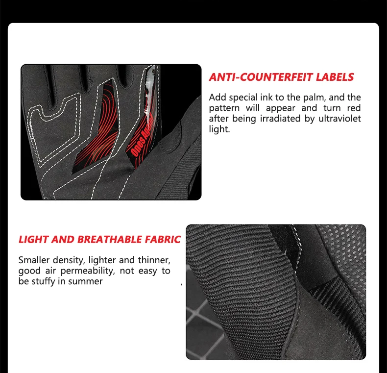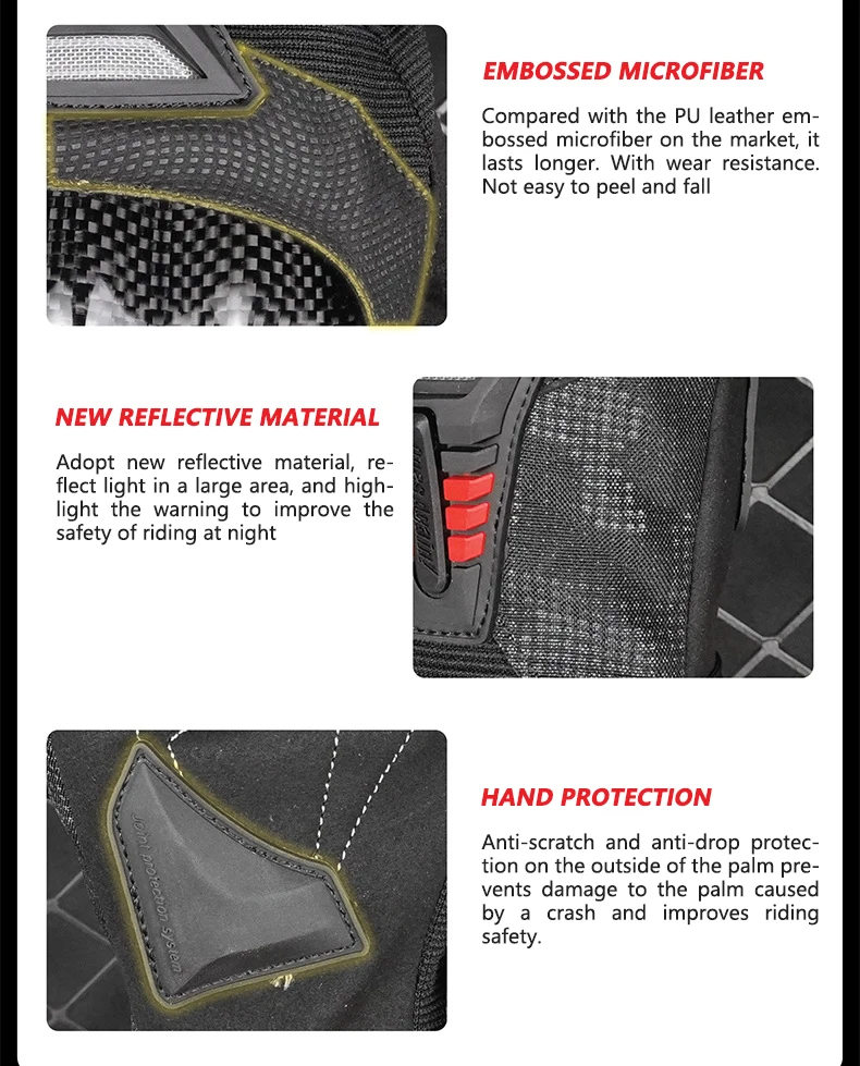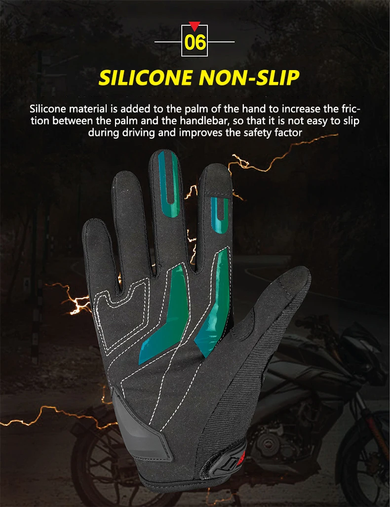 Silicone material is added to the palm of the hand to increase the fric-tion between the palm and the handlebar, so that it is not easy to slipduring driving and improves the safety factor