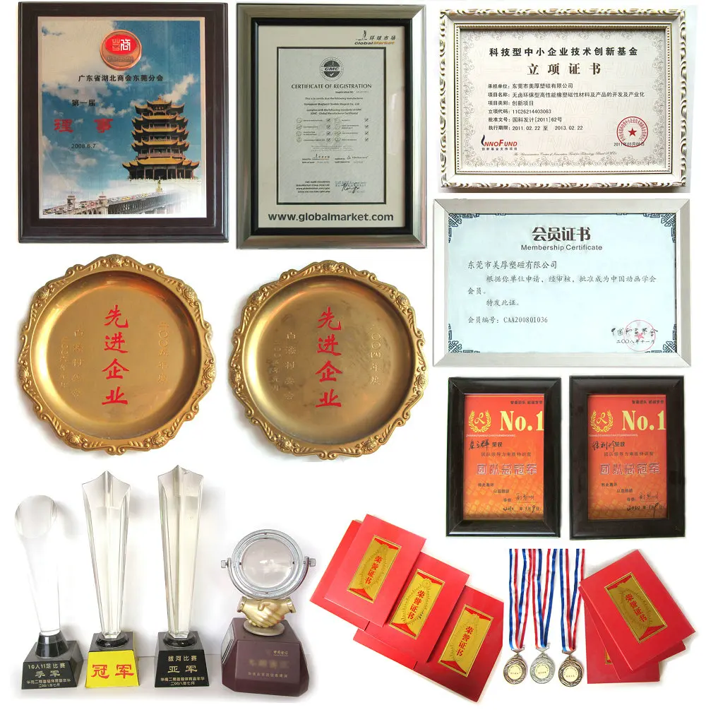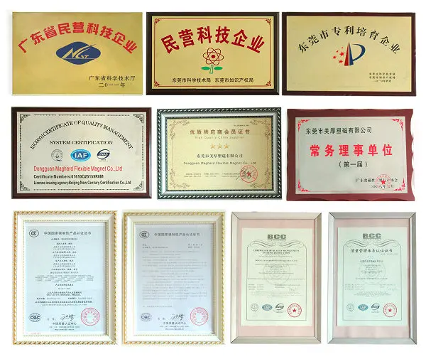 Dongguan Maghard Flexible Magnet Co. Ltd was established in Sept.2002. The company is located in Baihao Industrial zone, Houjie town, Dongguan city, Guangdong Province, PRC (Near to the Humen high-speed railway station). It has an area about 10,000M2 and 300 employees. Maghard is specialized in manufacturing and supplying various kinds of bonded ferrite magnets. (Flexible magnet/ rubber magnet/ plastic magnet), magnetic products, bonded ferrite magnet powder, soft PVC micro-injection design and advertising gift, etc. Rolls, sheets, strips and specific shape, PVC, PET, PP, EVA, PSA laminated and all kinds of printing on surface is available upon customer’s requests. In addition, we also deal with sintered ferrite magnet, NdFeB magnet and Alnico magnet. Our annual output can be up to 5000 tons and we can produce all kinds of magnetic products over 100 million pieces with total sales of 10 million USD dollars. Our products can be used in advertising industry, stationery industry, toy industry, gifts industry, health care industry and electrical equipment industry etc.
