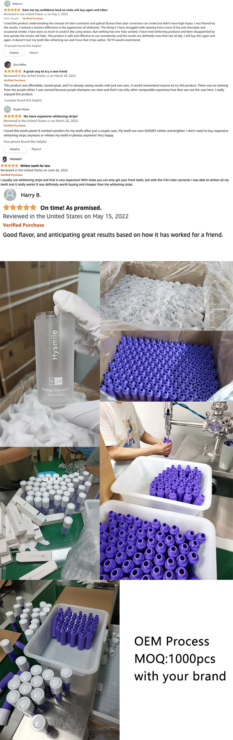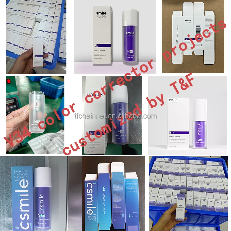 V34 корректор цвета 30 мл фиолетовая отбеливающая зубная паста частная этикетка дешевая