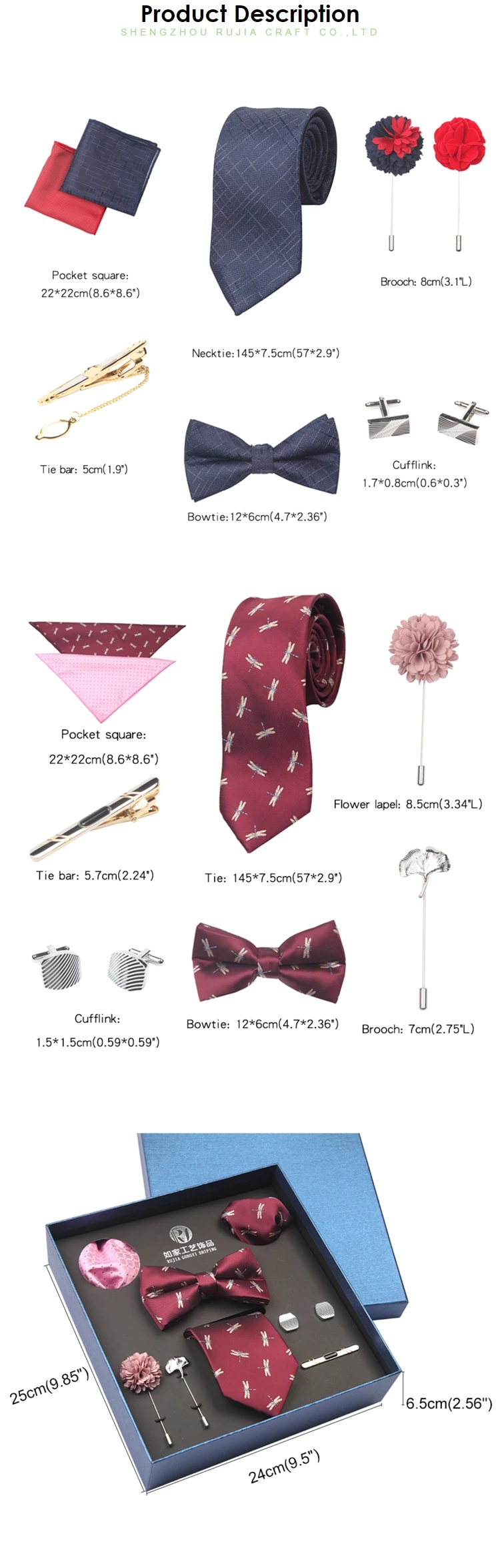 high quality custom mens paisley business poly necktie bowtie brooch gift box set