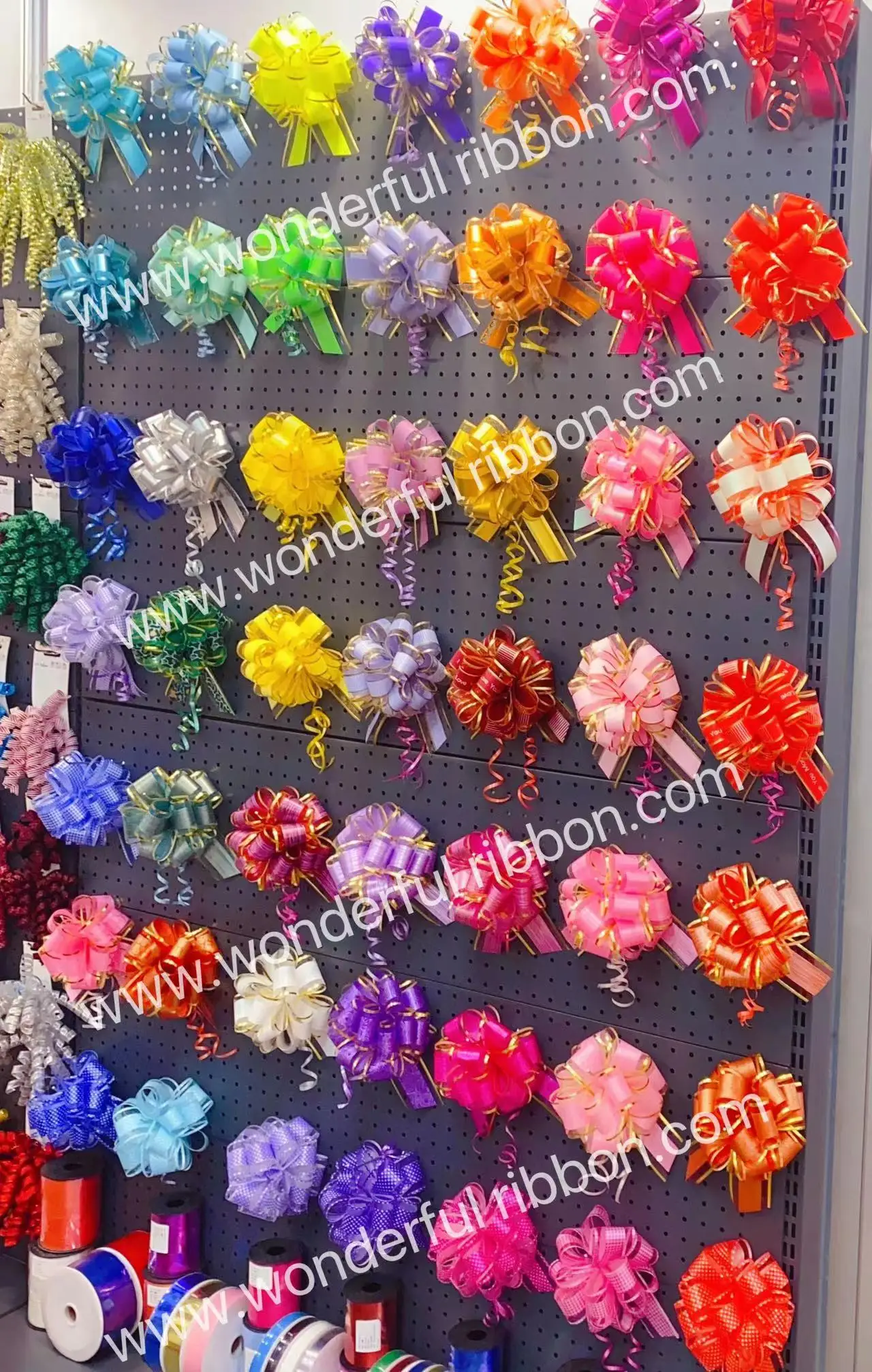 Other Production | Balloon ribbon, Spooled ribbon, Ribbon egg, Star bow, Curly bow, Gaint bow, Pom-Pom Pull Bow, Fancy bow, Butterfly pull bow, Fountain bow, Gift wrapping set, Paper raffia, Roll ribbon, Easter grass, Pre-tied bows, Plastic ribbon materials ect.. |