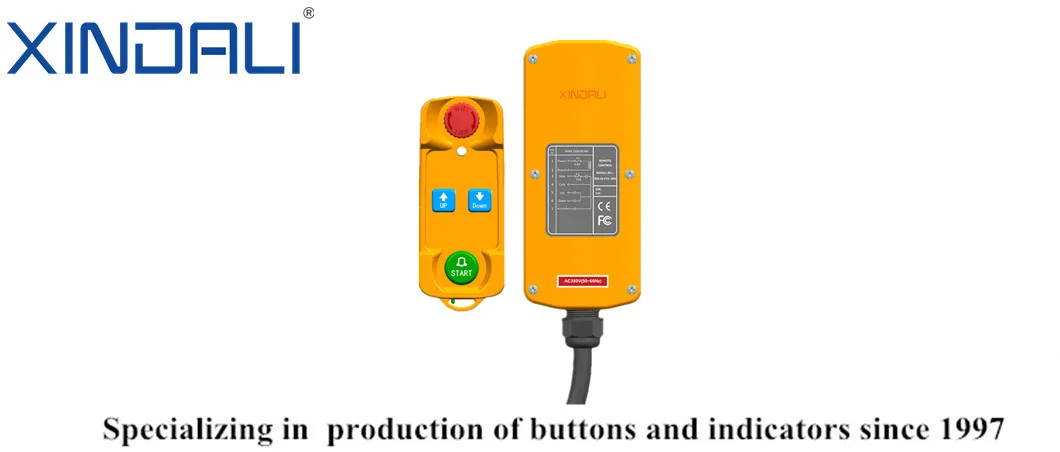 XDL19 industrial wireless remote controller is small and unusual, with complete types. Its products have passed ISO9001, ROHS, CE and FCC certification. Its shell is beautiful, firm, light to hold, reasonable in structure and complete in functions; The battery supports Type-C interface charging, and the buttons have buzzer and LED light prompts (with emergency stop indication, charging indication, battery undervoltage indication, full charge indication, signal indication, and startup indication). The product transmission distance can reach 100 meters; The circuit is safe and reliable; The outgoing cable is color surface with printed wire number and clear wiring. The sealing strip placed inside the product shell has good waterproof performance (up to IP65). This product is suitable for outdoor, dusty and other harsh places, and is used in industrial driving, hoist, lifting, automobile tailboard and other fields.