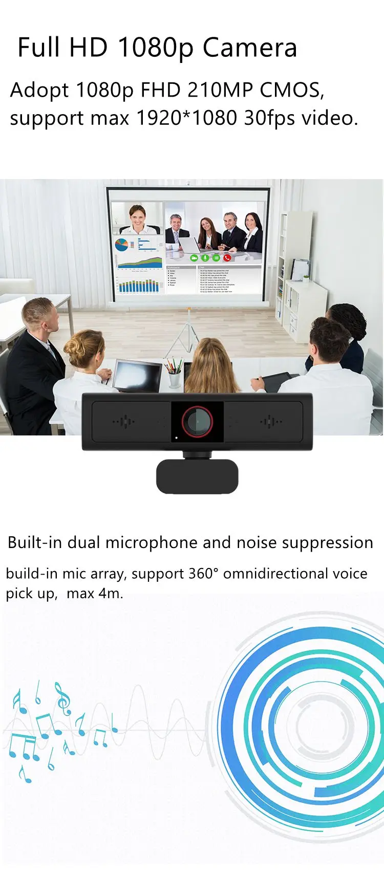 Noise level | < -48dBA | Interface | USB3.0 class B interface x1, RJ9 expansion microphone interface x2, 3.5mm microphone interface x1 | ||