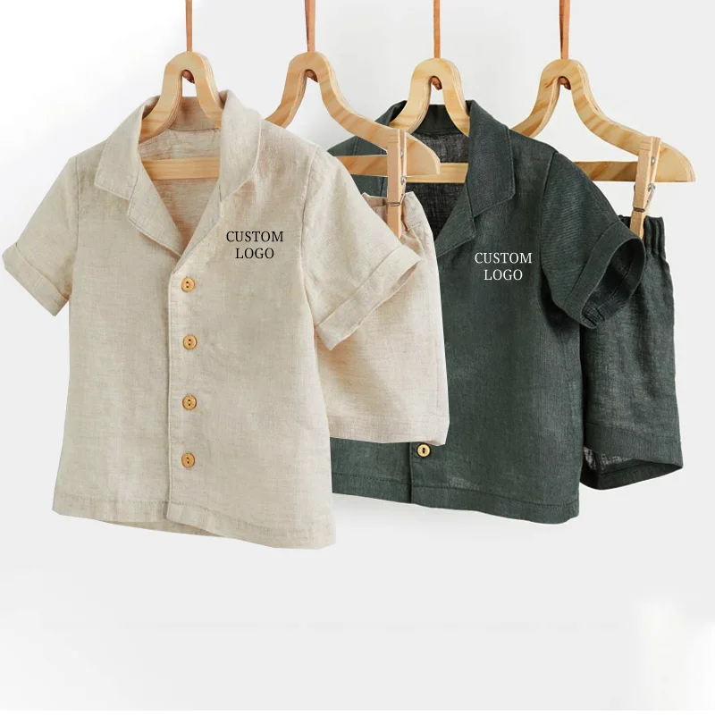 Items | Summer Kids Short Sets 2 Pieces Custom Button Up Shirt Basic Lounge Shorts Plus Size Casual Outfit Linen Two Piece Set Children | ||||||