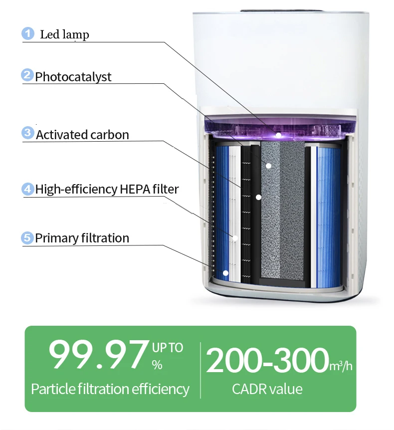 Negative Ion Air Purifier Hepa Filter Large Room