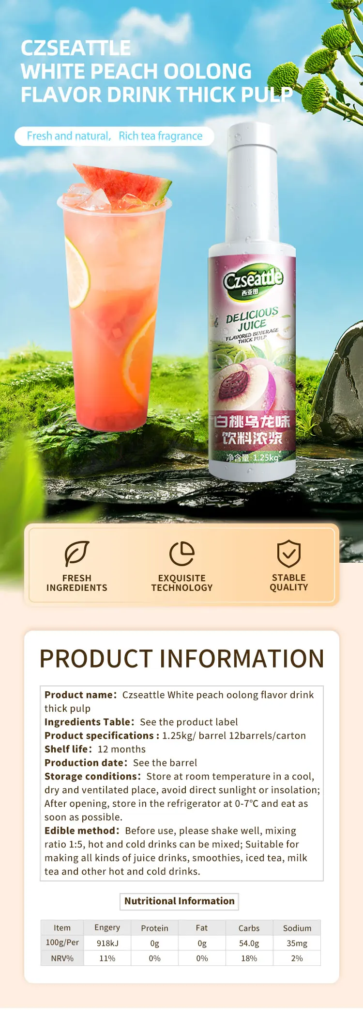 Czseattle белый персиковый Улун ароматизированный чай напиток и Концентрированный Фруктовый Сок мякоть для пузырьковых чайных