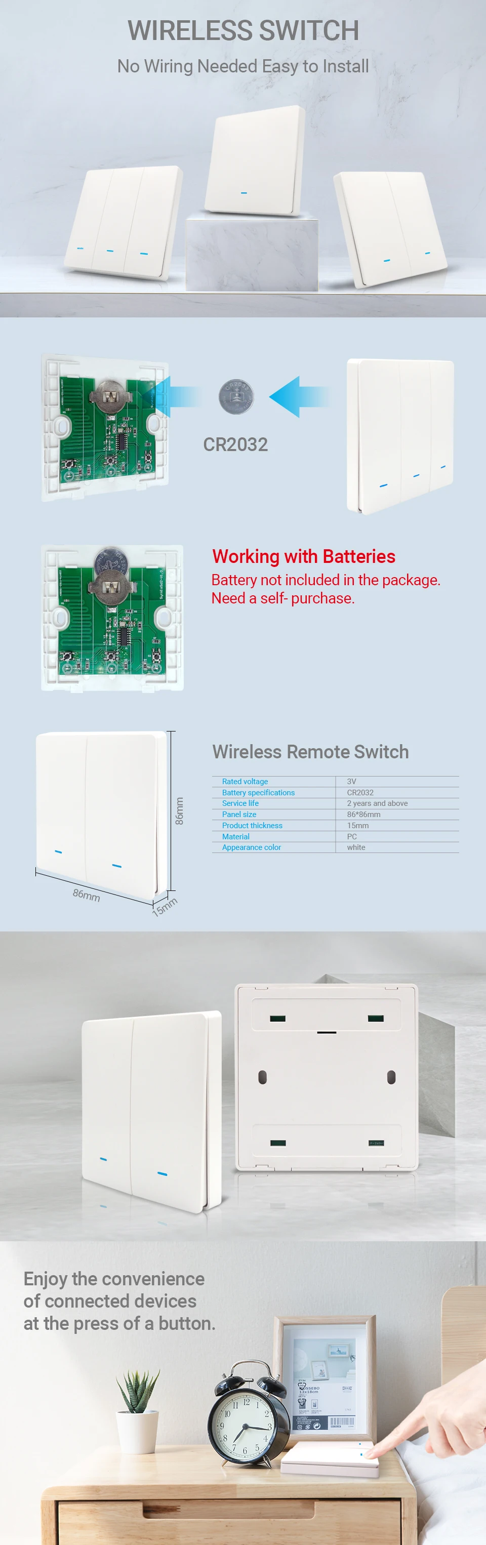 3.Simple Manual Control:With the slightly changed appearance as a traditional switch,it's just okay for us to simply manual control with our hands,which fits for the old so much.Besides,the traditional design is suitable for any decoration styles.