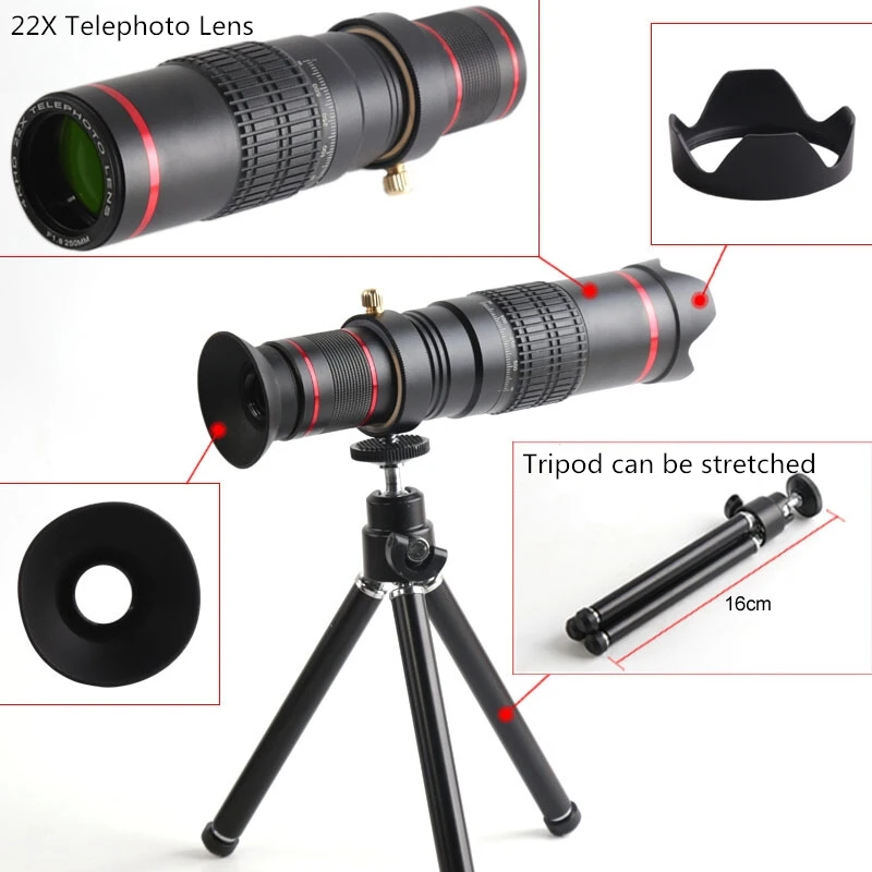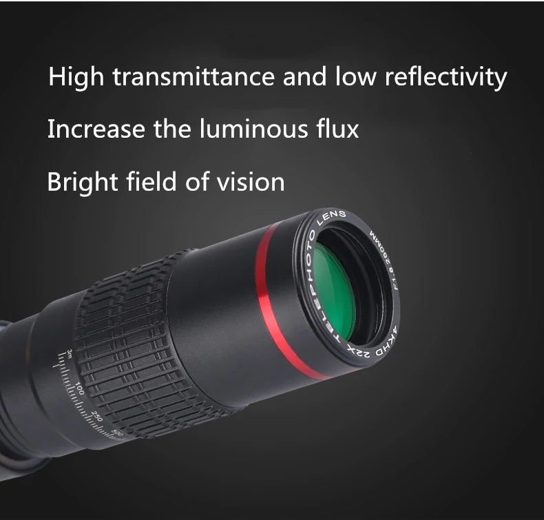 *22X Telephoto lens -- Lens crafted with optical glass and full multi-coated for enhancing light transfer to make your phone a professional telephoto camera.