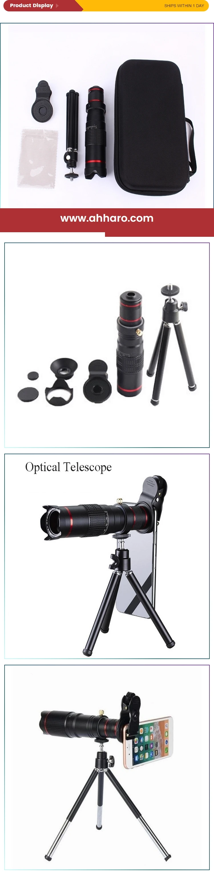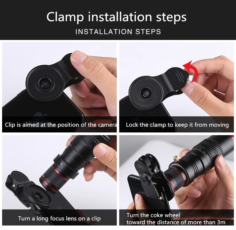 --Detachable telephoto monocular lens: Never miss an unforgettable and memorable scene. This detachable clip-on camera lens can also be used as a stand-alone telescope head to help you see distant objects, landscapes, games, and concerts more clearly.