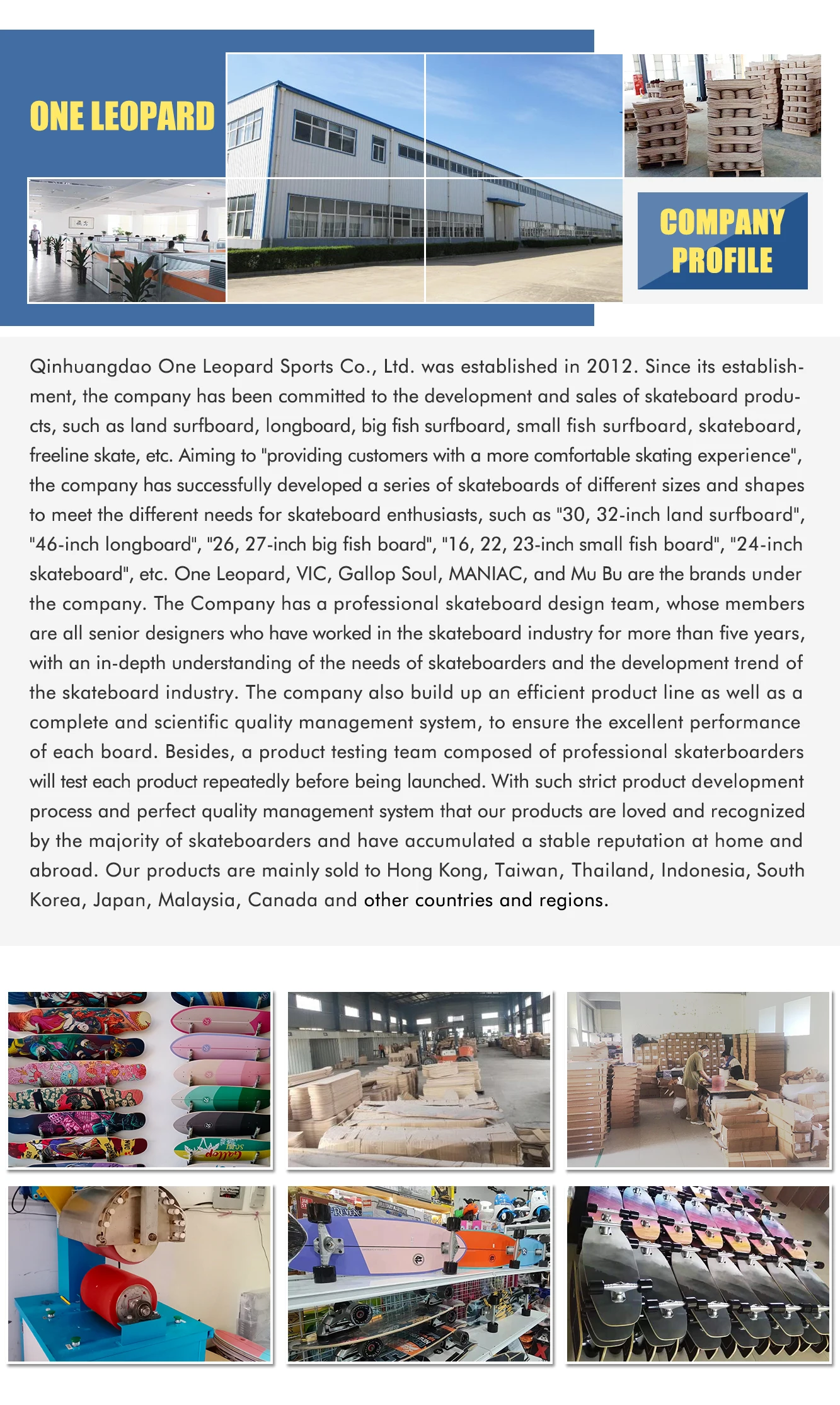 We have been focusing on skateboard production for 9 years, selling more than one hundred thousand skateboards at home and abroad every year.