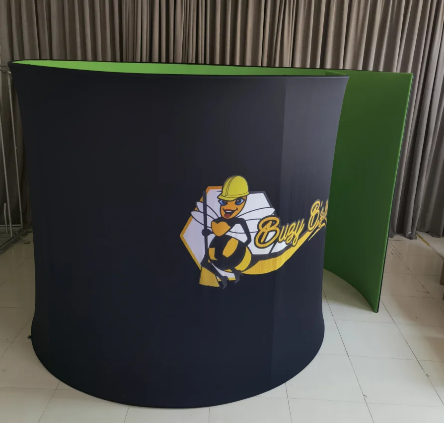 Details | 1. Size & shape can be customized 2. Single side print & double side print available 3. Covers can be done with your own logo, black is the most popular 4. Aluminum tube and tension fabric with dye sublimation printing method | ||||||||||