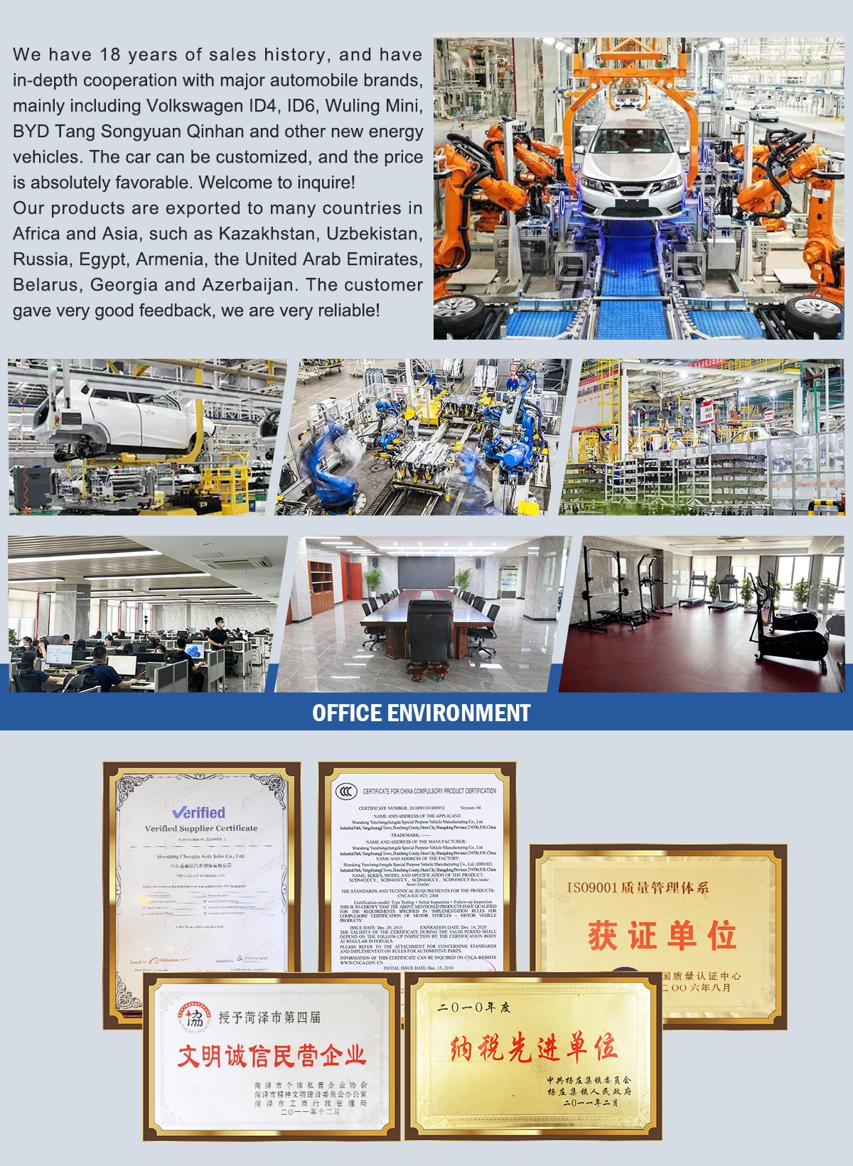 We are based in Shandong, China, start from 2018,sell to Africa(80.00%),Southeast Asia(15.00%),South America(5.00%). There are total about 101-200 people in our office.
