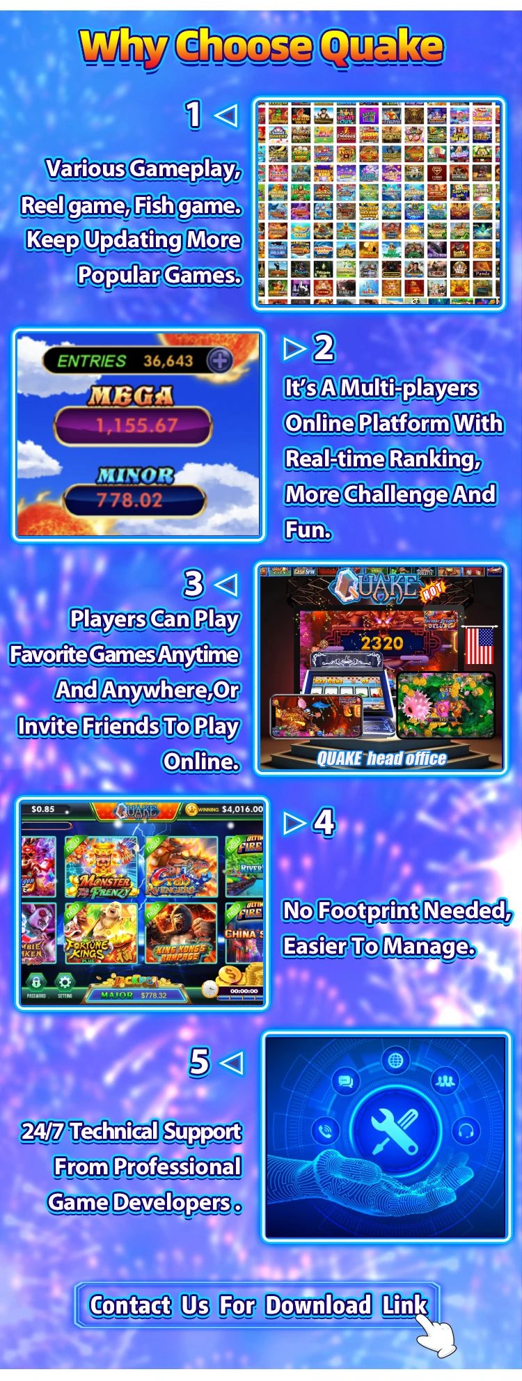 60+ different skill game on our quake online games platform,we will add more and more new games into our platform,and we can customized online games for our clients.