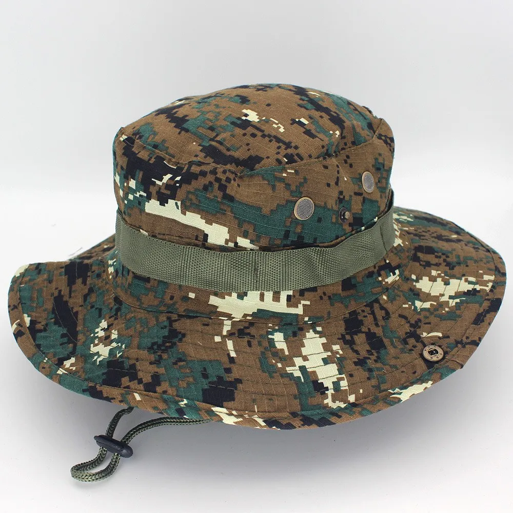 Product Description | Wholesale leisure jungle outdoor fishing mountaineering camouflage fisherman hat custom boonie Safari hat for men |