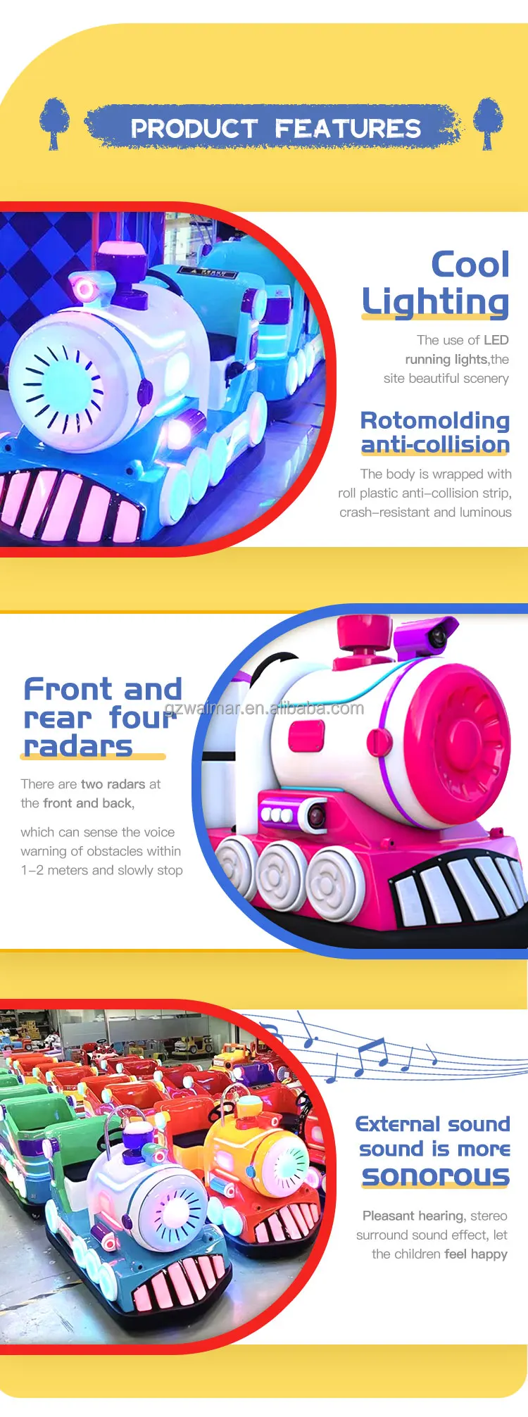 We use a remote control to start the game, no coins are needed, and you can set the game time, volume and radar switch within the system