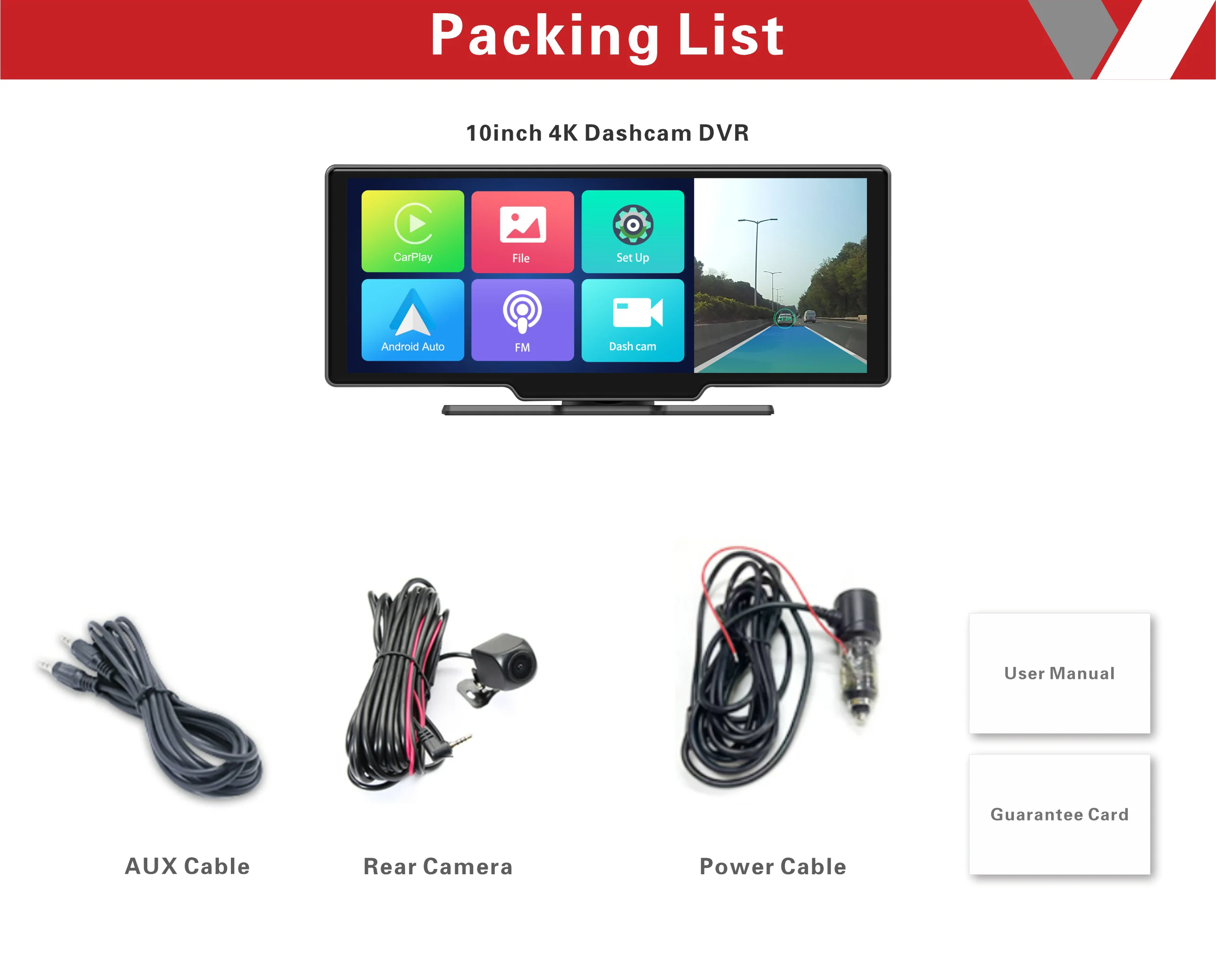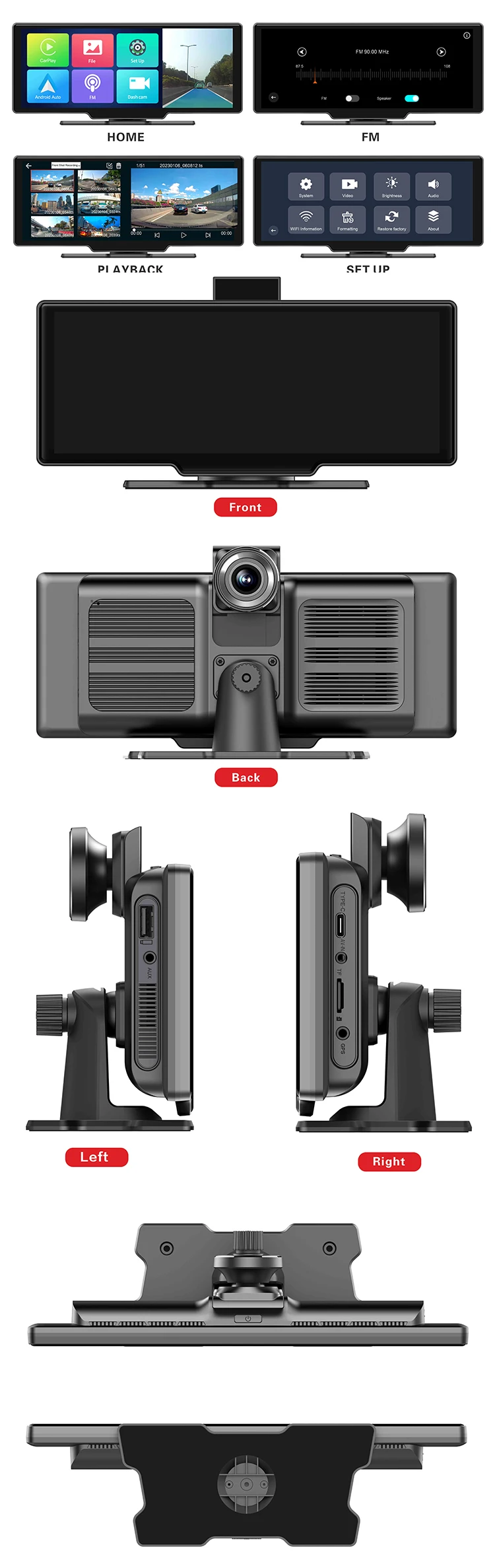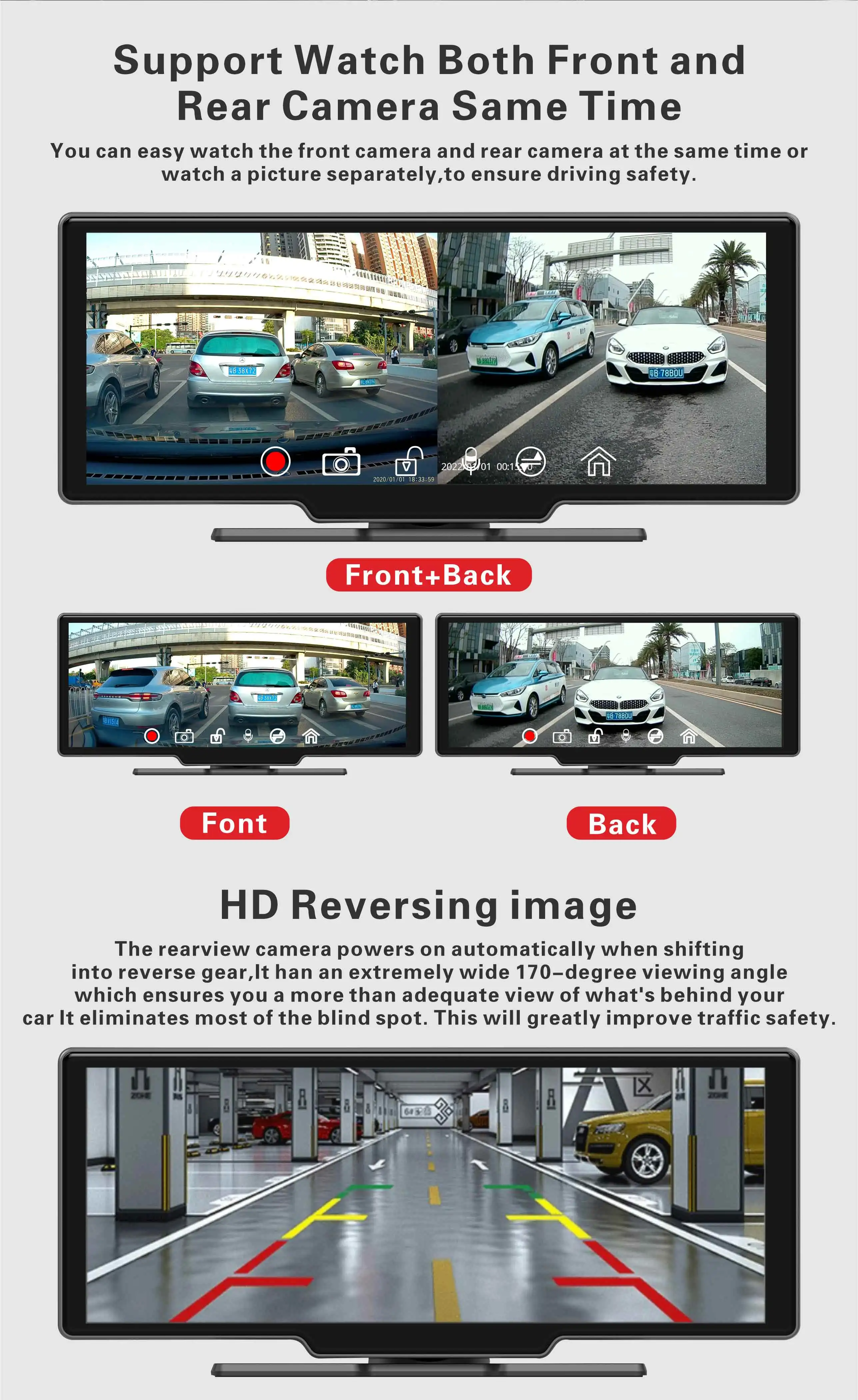 Functions | Built in Wi-Fi,Bluetooth, GPS, 4G, Carplay, Android Auto, Linux System, Play Music, FM, GPS Navigation, App Control,Voice Command,ADAS, G-Sensor,Night Vision, Loop Recording, 24H Parking Monitoring,Collision Detection | |||||||