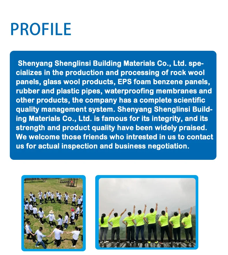 Shenyang Shenglinsi Building Materials Co., Ltd. is a rock wool insulation materials, glass wool products, EPS foam benzene plate, rubber insulation, waterproof coil and other products specializing in the production and processing of the company, has a complete scientific quality management system. Shenyang Shenglinsi Materials of construction Co., Ltd. Integrity, strength and quality of products to obtain the trust of the industry. Welcome friends from all walks of life to visit, guidance and business negotiation.