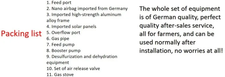 It is easy to feed and discharge materials, no need to manually clean the materials in the biogas digester, and will not be poisoned.