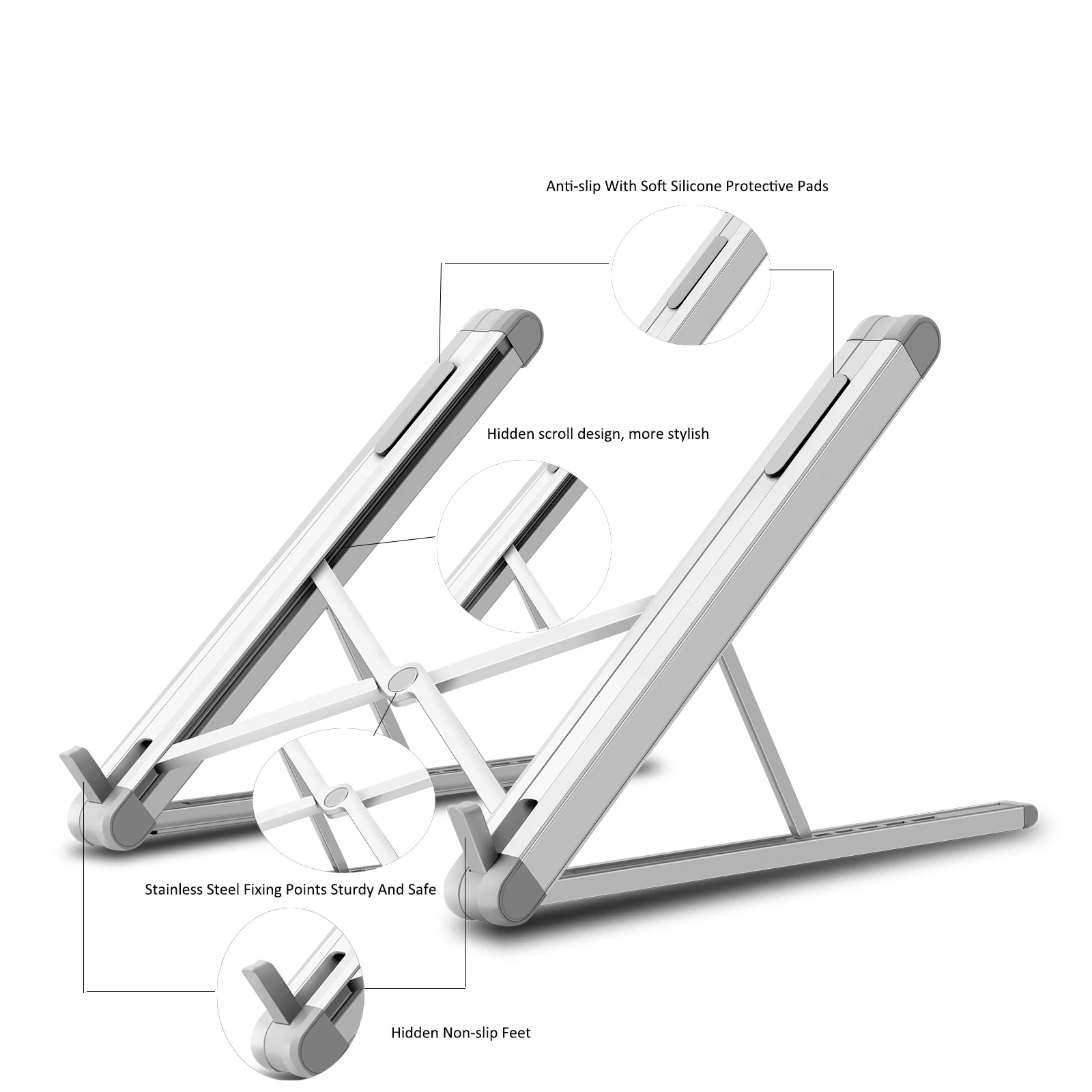 The anti-slip silicone pad on the laptop stand could keep them from sliding away and help them
