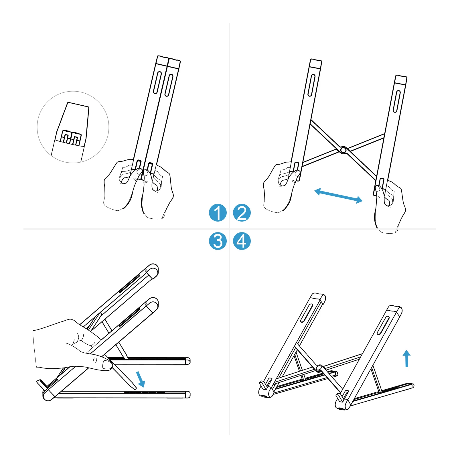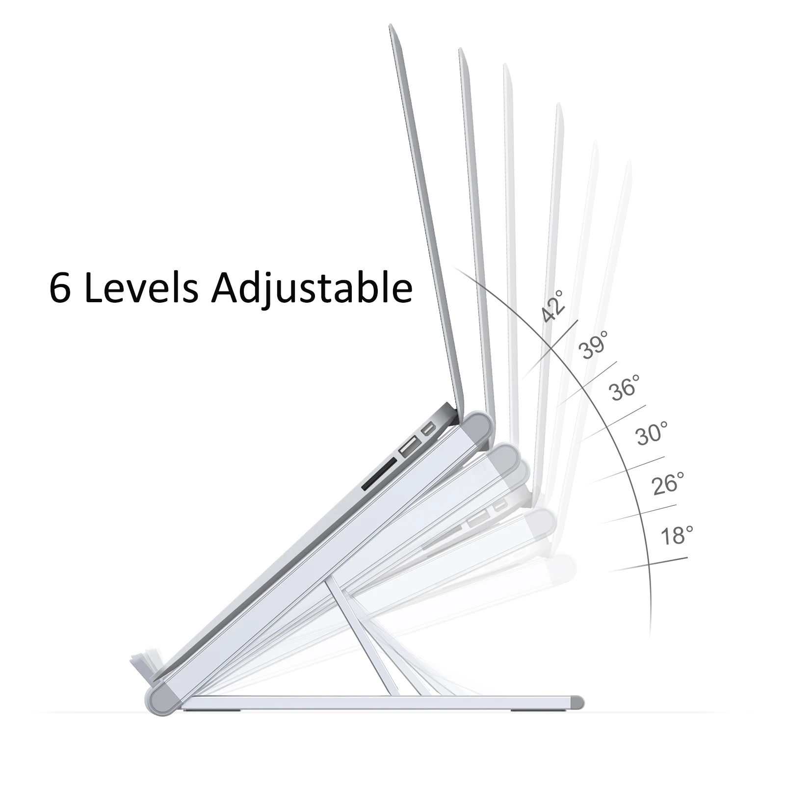 Our laptop stand offers 6 adjustable pointing sites, adjust the height to your comfort level, so that you