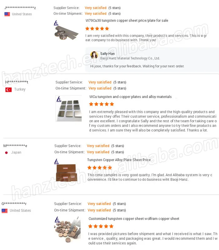 Item | stock W70Cu30 W75Cu25 W80Cu20 W85Cu15 W90Cu10 polished tungsten copper sheet / copper tungsten plate / wcu alloy sheet / tungsten copper parts |