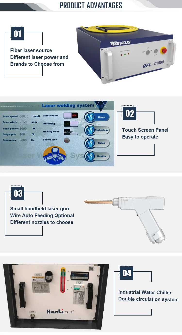 It adopts a 1000W continous fiber laser source, with long lifetime up to 100,000 hours.
