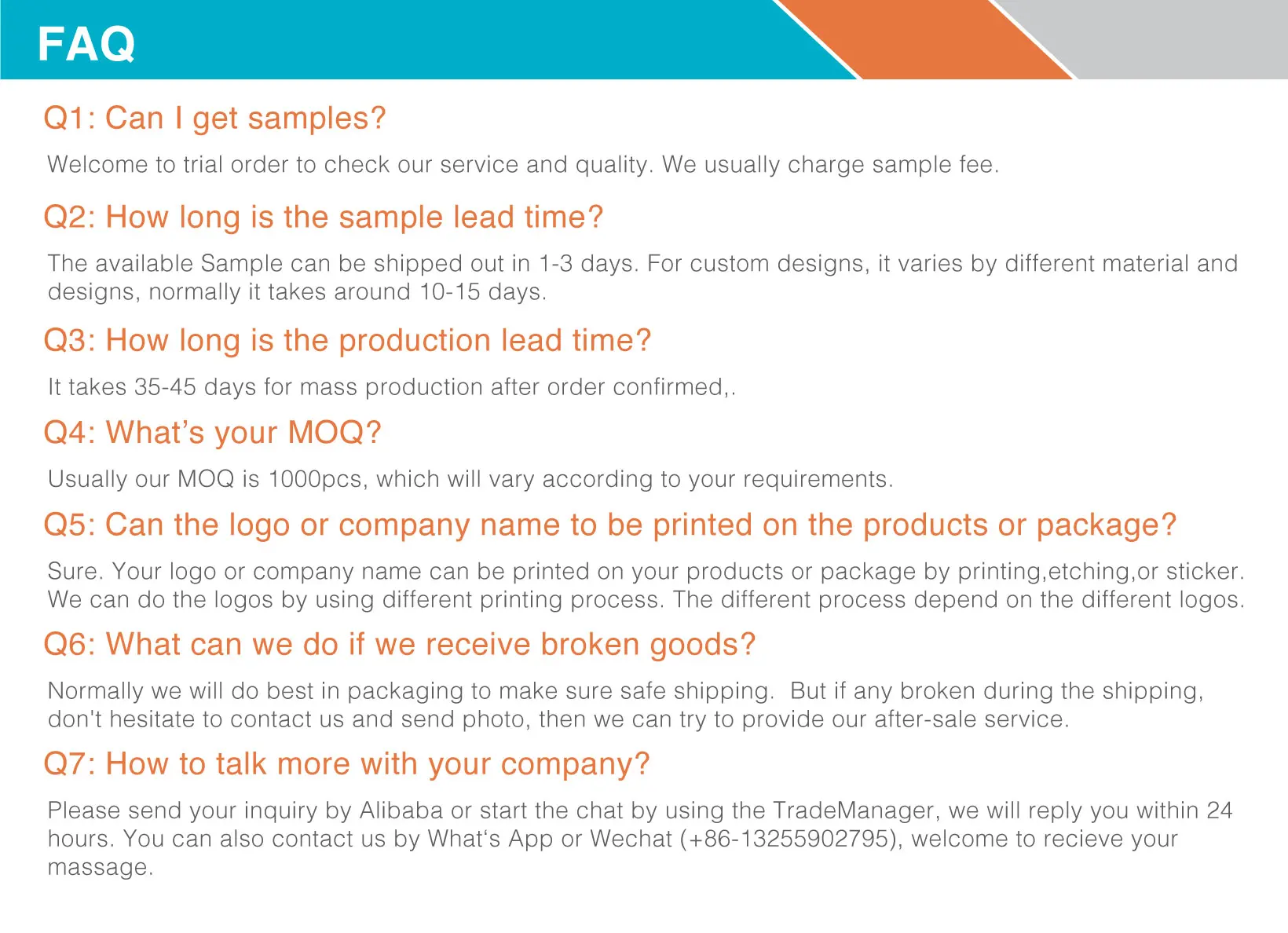 Production Time | 35-50 workdays (depend on order quantity) |