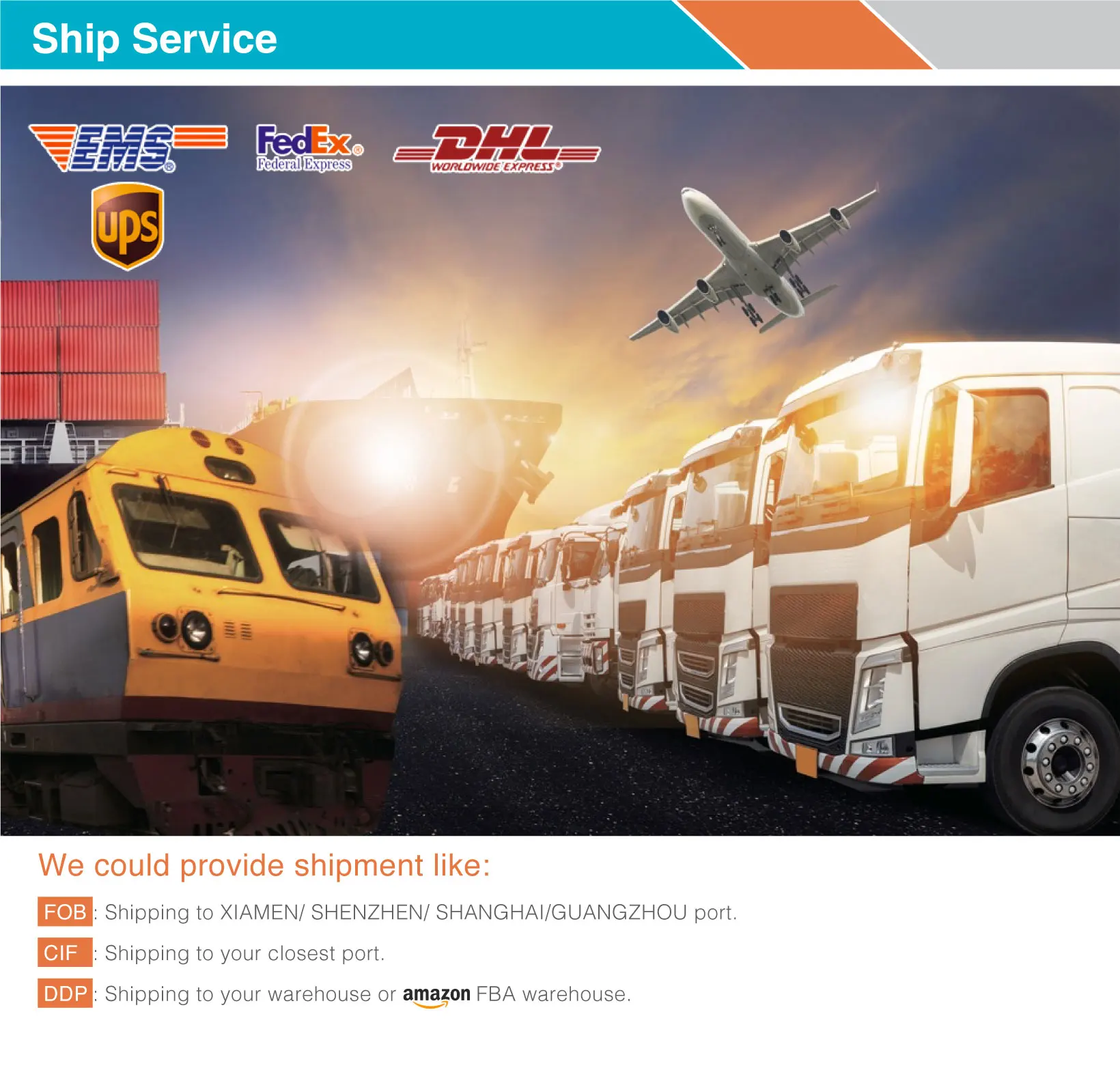 Shipping | 1)By sea from XIAMEN PORT.china 2)By international express Fedex DHL TNT etc |