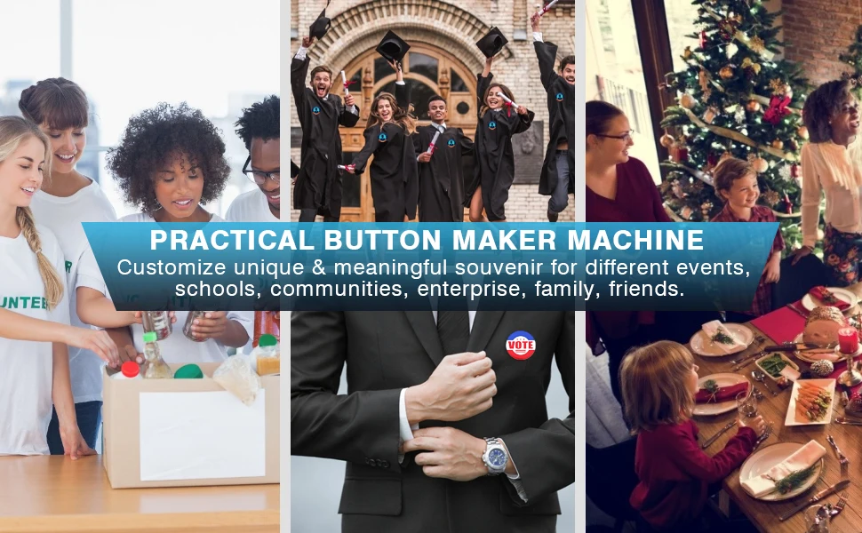 DIY Button Maker Machine Kit Includes | 58mm (2¼ inch) badge maker, 500pcs button parts, 58mm (2¼ inch) circle cutter, 100pcs A4 Size Photo Paper and a cutting pad |