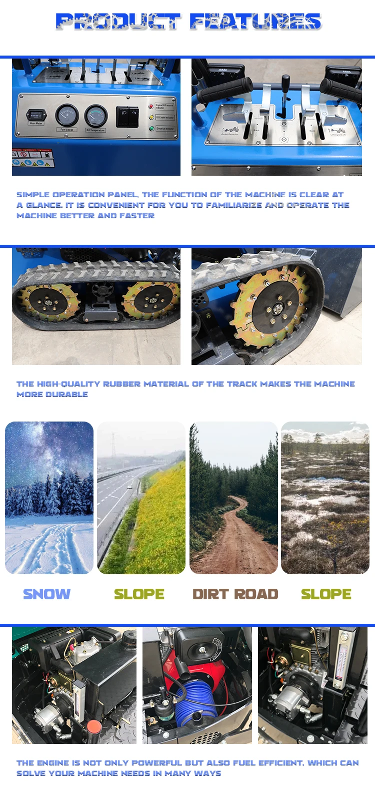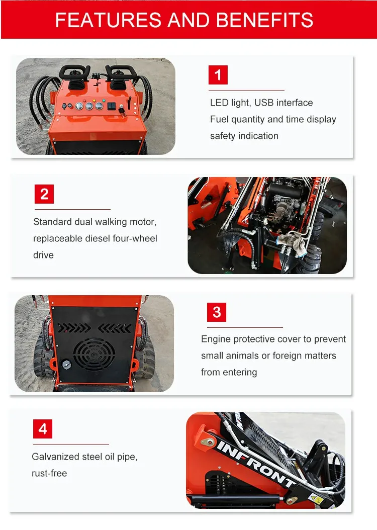 Our company's main products are lawn mowers, and other products include excavators, skid steer loaders, bulldozers, road rollers, dump trucks, wheel loaders, which sell well in the domestic market and are exported to Europe, America, Oceania, etc.