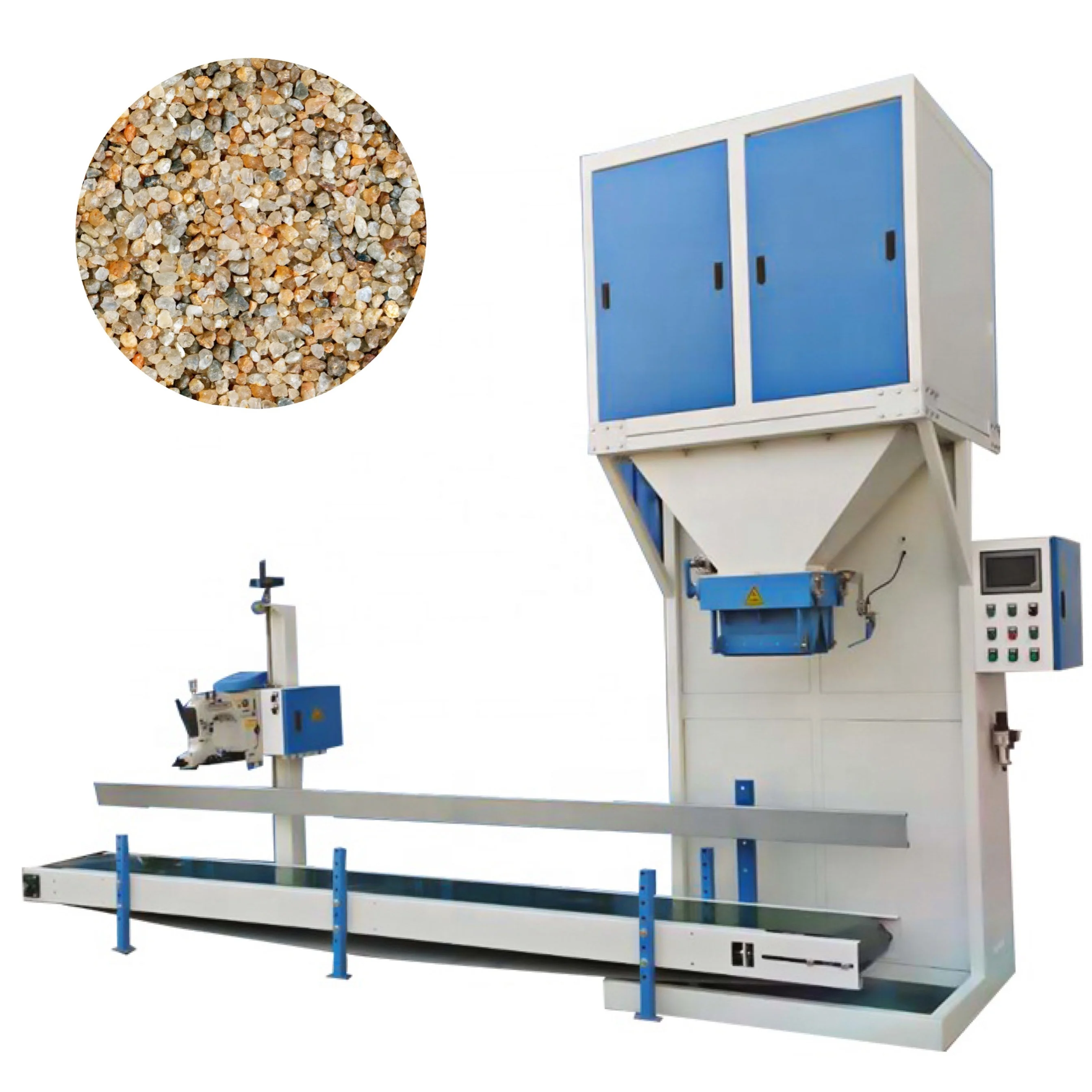 Application Materials | The granule packing machine is suitable for semi-automatic quantitative packaging of loose, non-sticky granular or powder-containing granular materials in the chemical, food, feed,pellet,grain fertilizer,feed,rice,beans, hardware, building materials and other industries. |